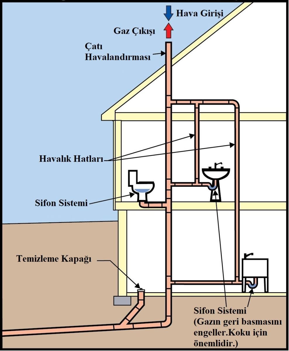 Pis su tesisatı kendi içerisinde, dış pis su tesisatı ve iç pis su tesisatı olmak üzere ikiye ayrılır. Dış pis su tesisatında PVC, çimento künk veya kil künk borular kullanılmaktadır. İç pis su tesisatı ana boru, kat borusu, kolon borusu, bağlantı borusu, havalık borusu olmak üzere beş çeşitte ayrı ayrı borulanmaktadır.